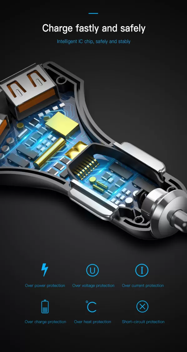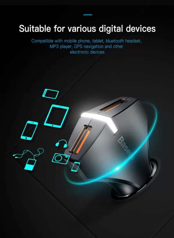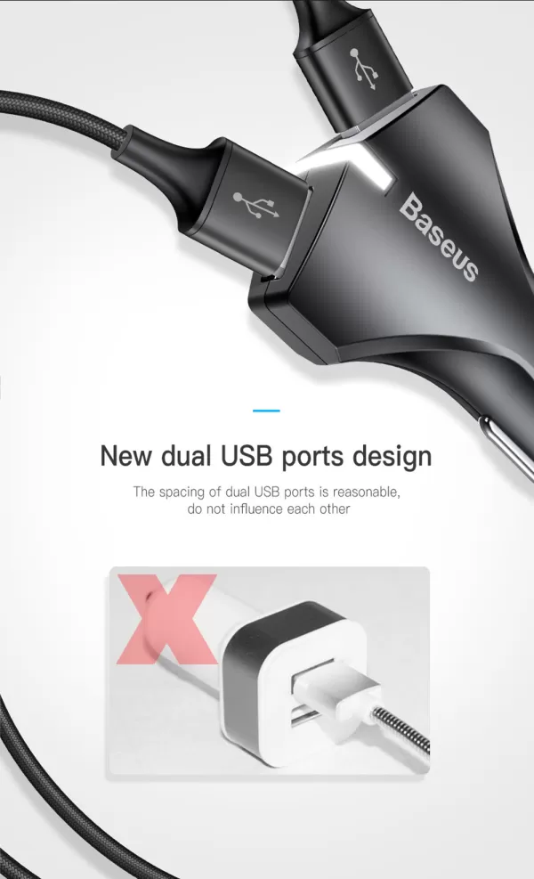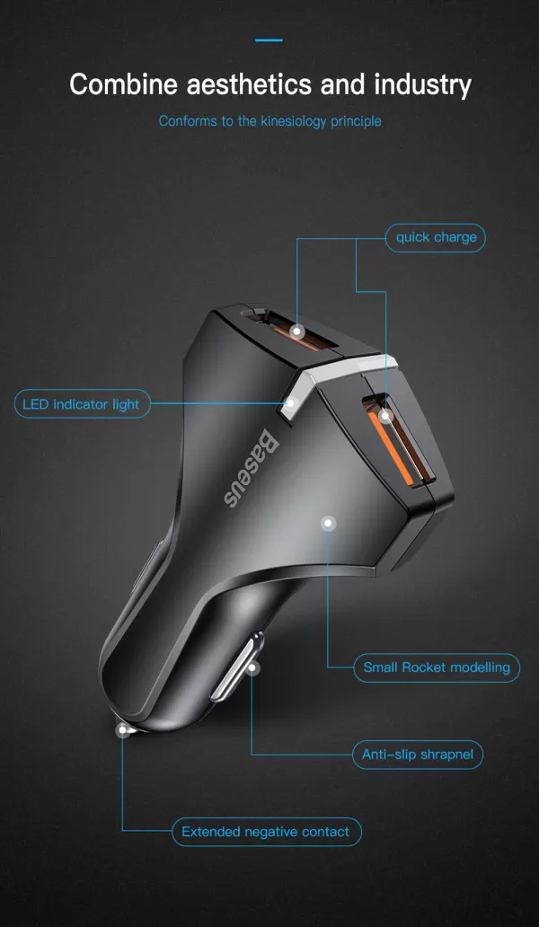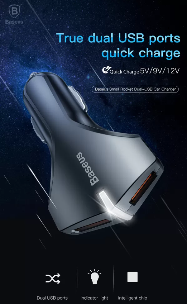 BASEUS Rocket QC 3.0 Fast Charging Dual-Port Car USB Charger