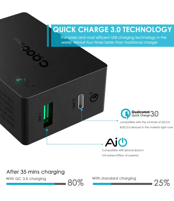 3 rotatable plug pins - Thanks to rotatable design charger can...