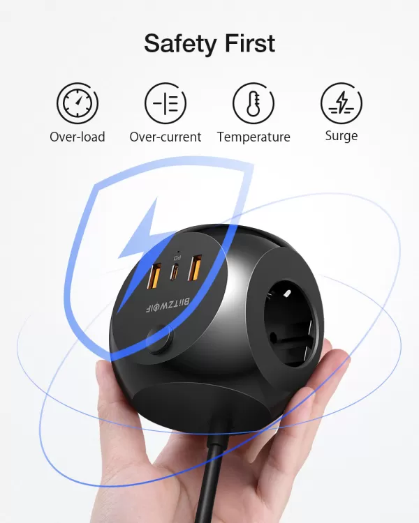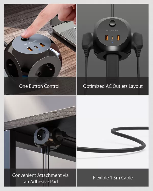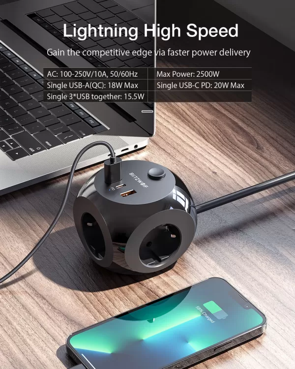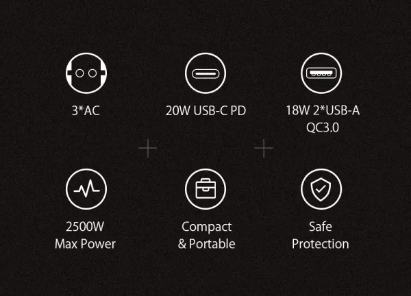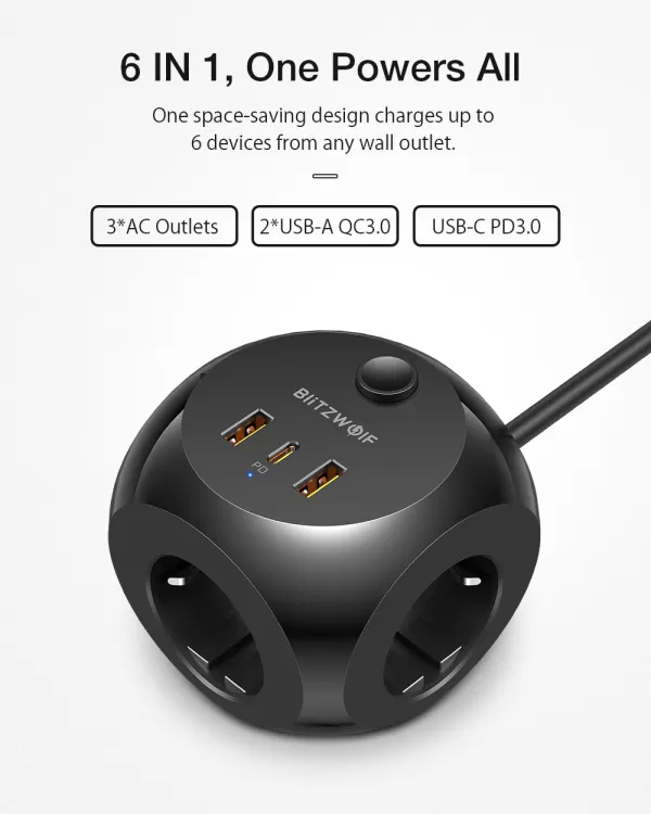 Jungtys: 8x AC išėjimai 2x 20W USB-C PD 2x 18W USB-A QC3.0...