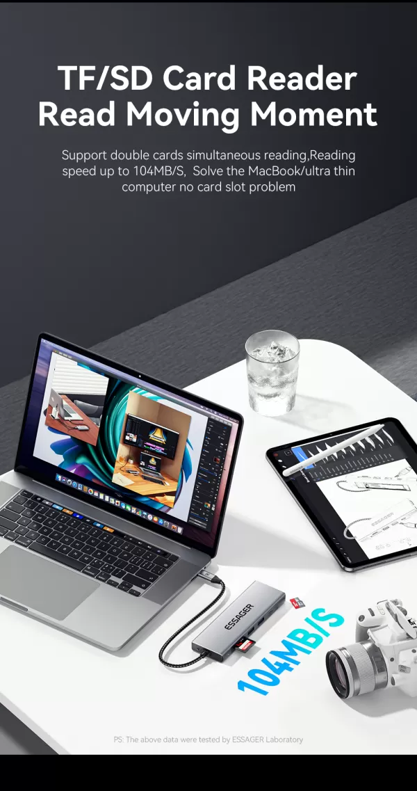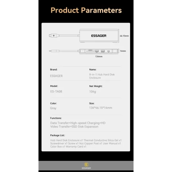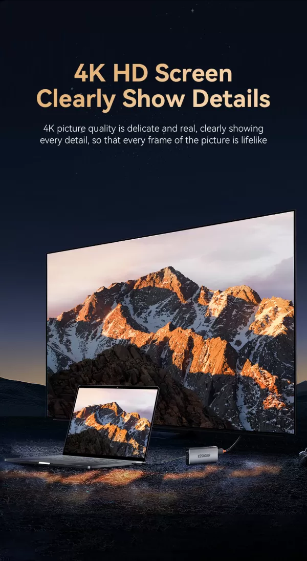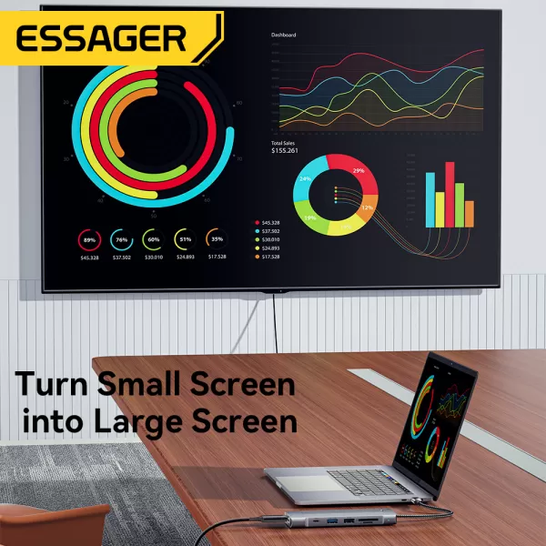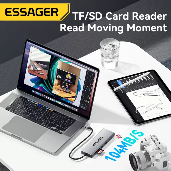 USB šakotuvas (HUB) Essager 8 in1 su type C, SDTF kortelių skaitytuvu, HDMI ir SSD jungtimi